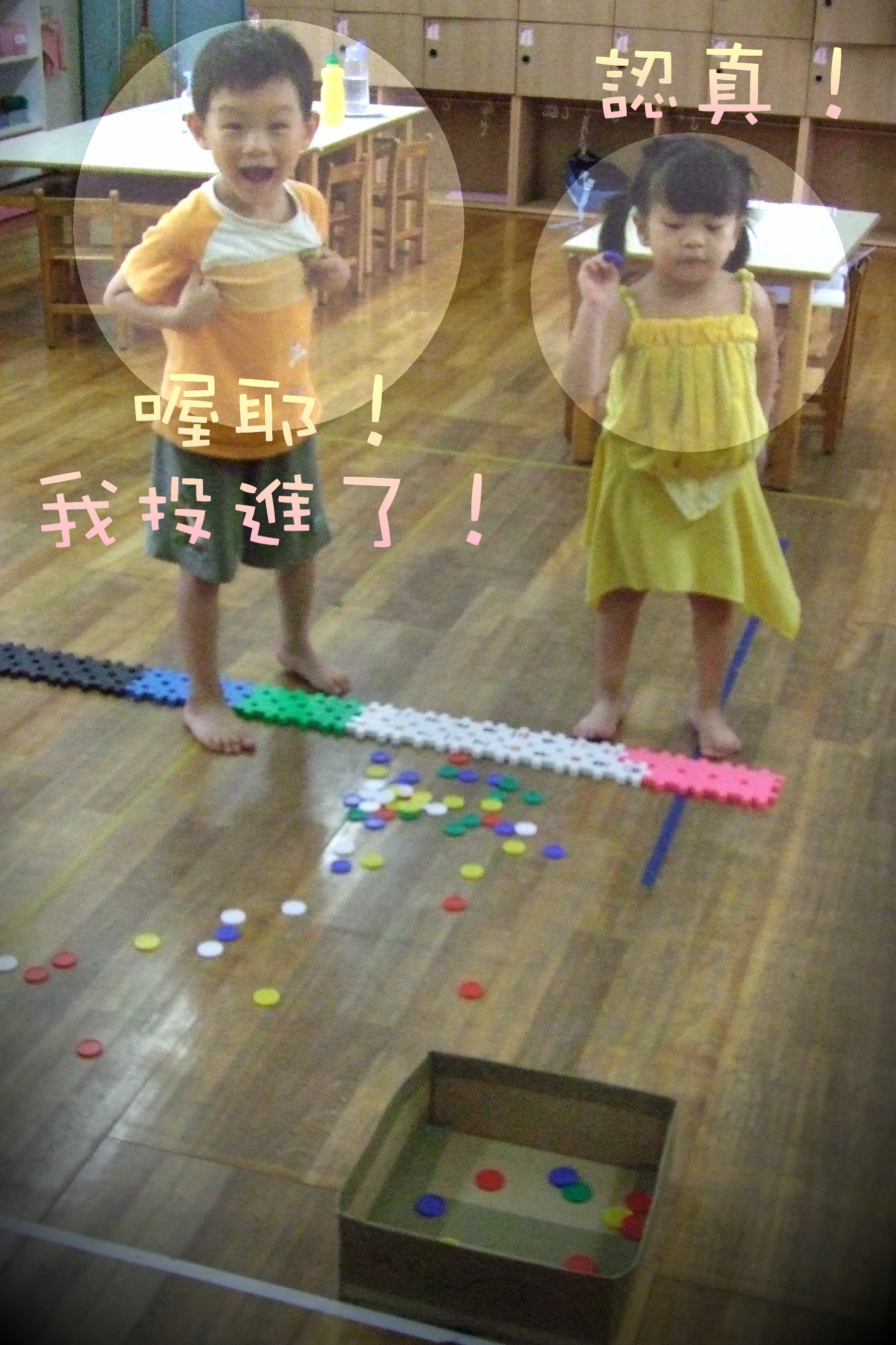 準備物品:大容器一個(箱子、桶子)、可投擲的小物(沙包、小球等)